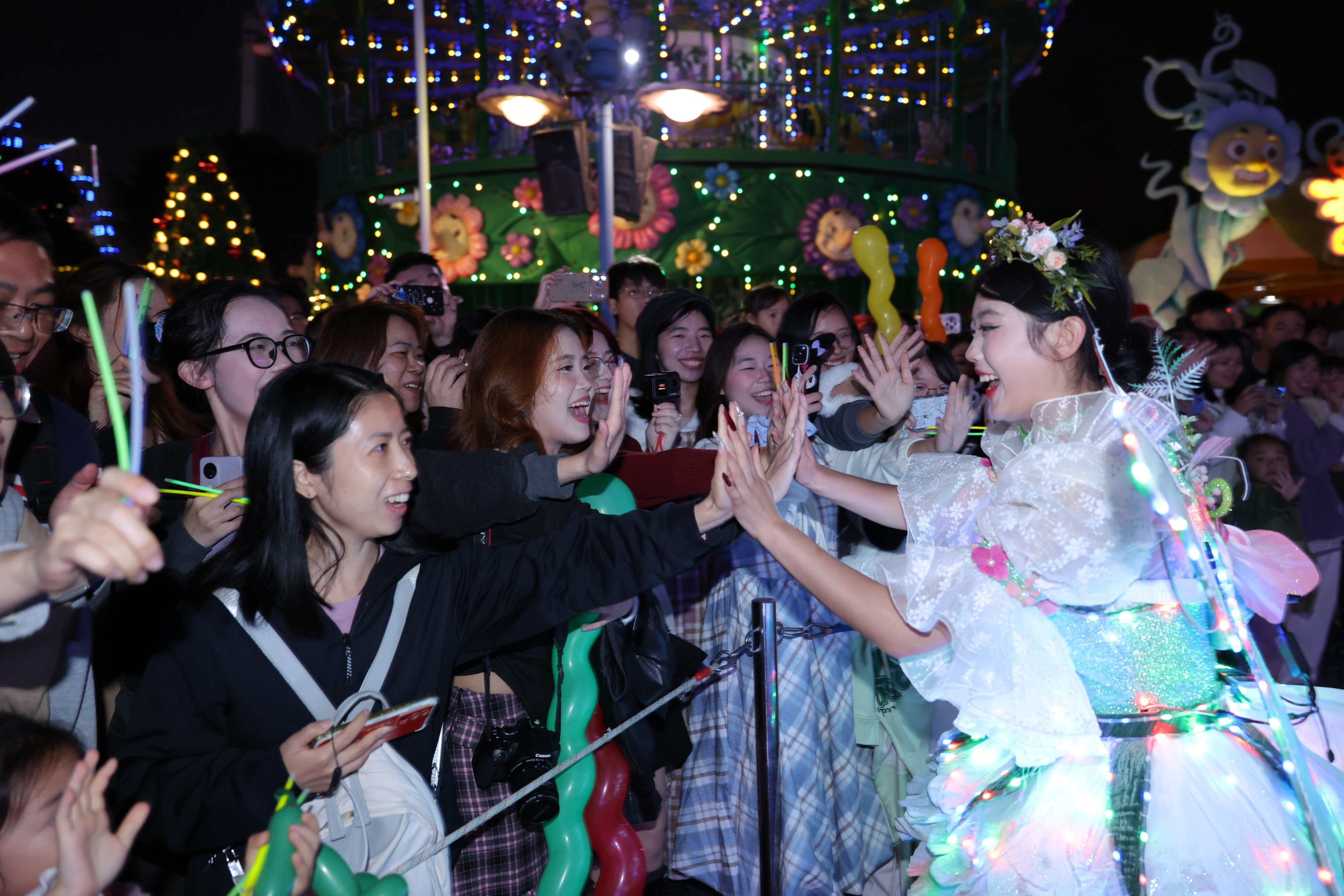 萌娃享专属节目,全家出游更省心。春节期间,小朋友可打卡《喜羊羊与灰太狼》《铠甲勇士》等精品儿童剧,看喜羊羊花车巡游,与剧目“明星”零距离互动。同时小朋友还能畅玩花园派对、果虫列车等温和游乐设备。